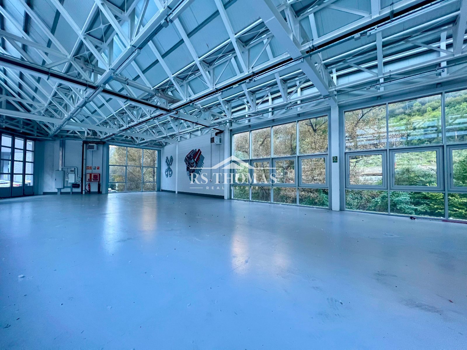 - Planta baixa/subterrània: espai diàfan de 556,94 m², amb bany i sala tancada. L´accés es realitza mitjançant una rampa calefactable, amb porta de 4,76 m d´alçada i 4,89 m d´amplada.