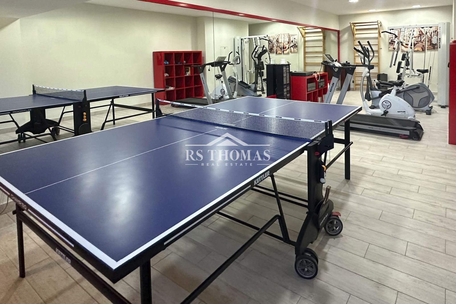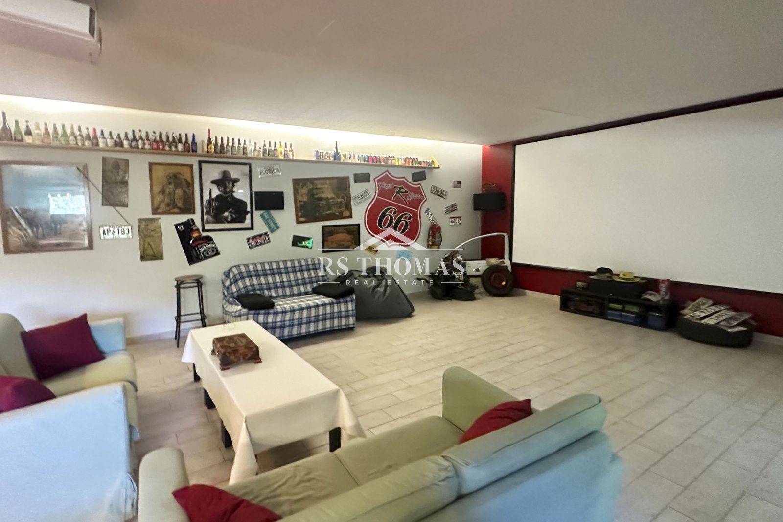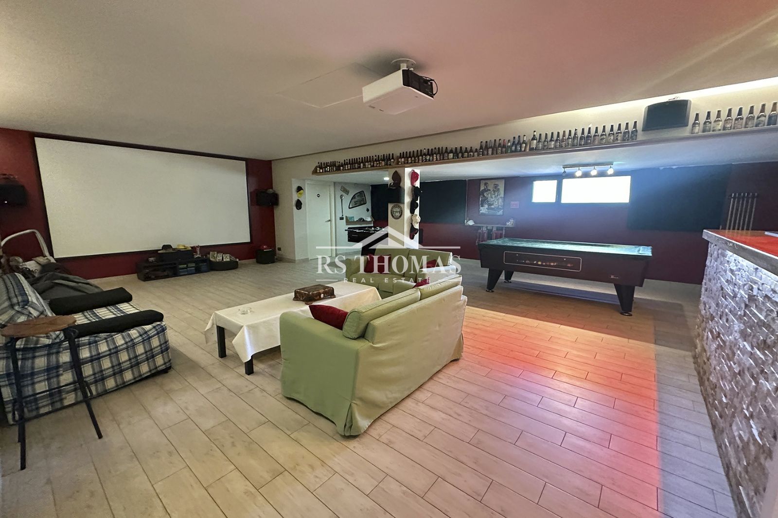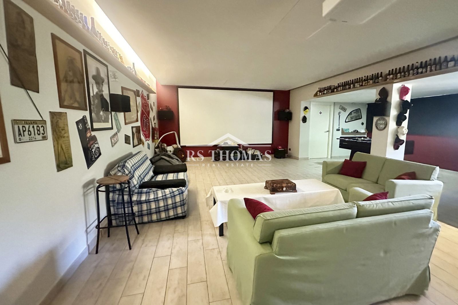 Por la planta baja tenemos el acceso a esta exclusiva propiedad donde vemos un amplio garaje con capacidad para más de 10 vehículos, un gimnasio equipado, una pre-instalación para la sauna, una sala de juegos, una sala polivalente, un aseo, una sala de estar equipada con home-cinema y una fabulosa zona de bar y salida al jardín exterior donde encontramos un jacuzzi. En esta zona también encontramos la sala de máquinas de la vivienda.