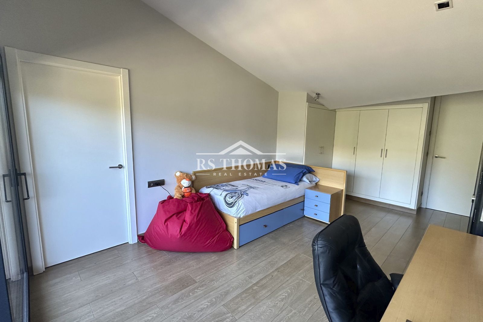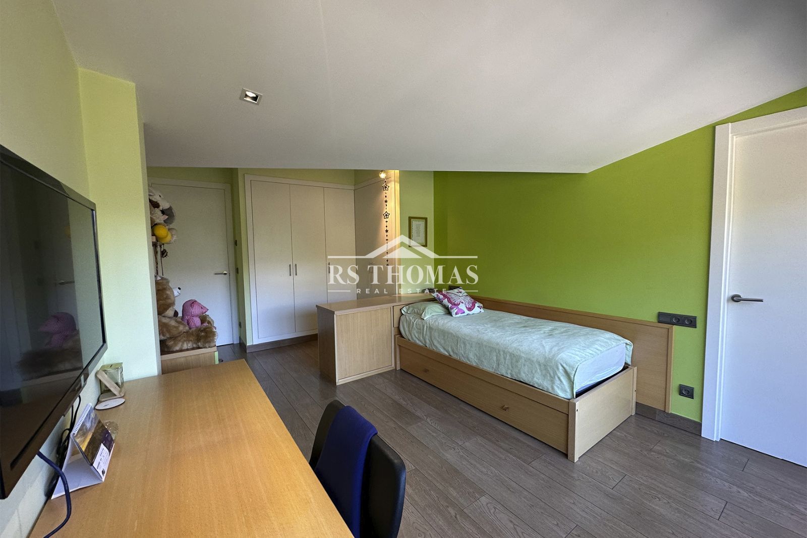 Finalmente, en la segunda planta, tenemos la zona de noche formada por tres dormitorios dobles en suite con armarios empotrados totalmente exteriores con salida directa a la terraza, uno de estos dormitorios es la máster suite con vestidor. Todas las estancias tienen baño completo con ducha y la máster suite también tiene bañera.